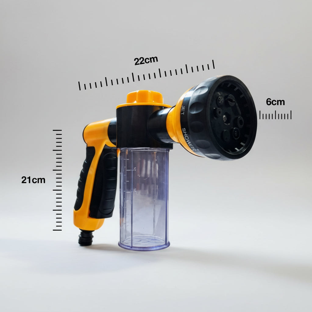 Com 8 tipos de jatos diferentes, esse esguicho se adapta a cada situação desde regar suas plantas até lavar seu carro como em um lava-rápido.